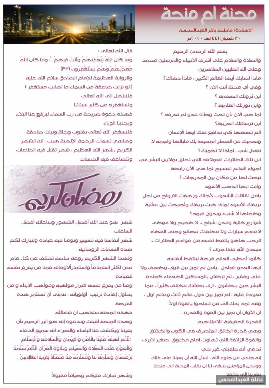 شهر أنفاسنا فيه تسبيح ونومنا فيه عباده