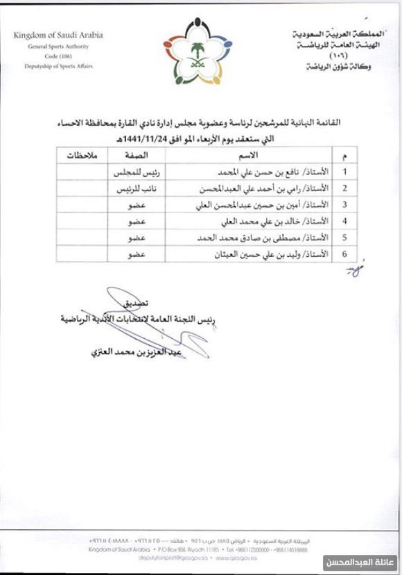 كما هي دائماً العائلة سباقة في خدمة المجتمع وتسعى دائماً لتقديم خيرة كوادرها في شتى الاعمال التطوعية، يسرنا ان نتقدم بأطيب التهاني والتبريكات للكابتن السيد رامي العبدالمحسن ابو ماجد بمناسبة انضمامه لعضوية مجلس ادارة نادي القارة للدورة الجديدة بمنصب (نائب رئيس النادي) والتي عقد اجتماع مساء امس وتم عمل الانتخابات والترشيحات النظامية ولا يسعنا الا ان نقدم له التهنئة والدعاء بالتوفيق في هذه المهمة الجديدة