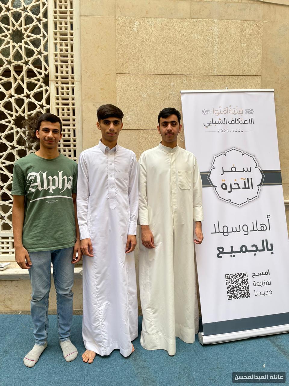 بحمد الله و توفيقه و بفضل الرعاية و الإهتمام من هذه الأسرة الطيبة بأبنائها وفق عدد كبير من أبنائنا للموفقية في آداء شعيرة الإعتكاف في الشهر الفضيل و في العشر الأواخر سواء في القارة أو خارجها وهذا دليل على بذرة الخير و الصلاح فيهم .. و نسأل الله لهم الموفقية و الصلاح و دوام التوفيق لحضور مجالس الخير و الذكر .. وهم :