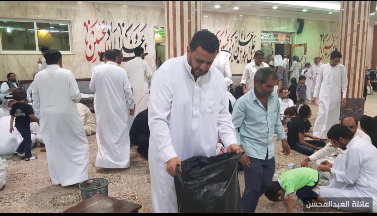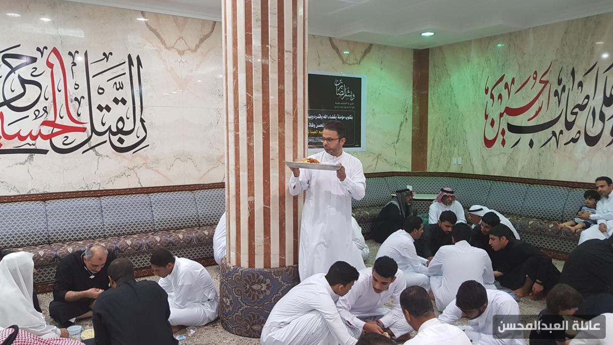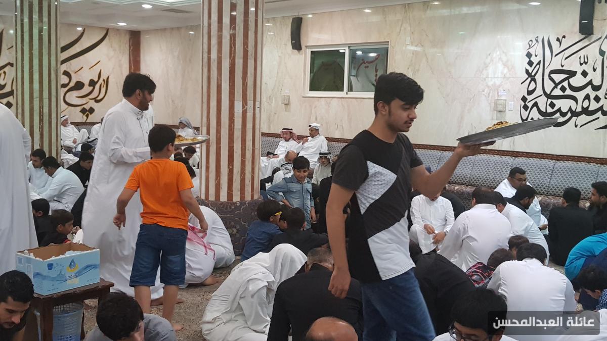يقضي مجموعة من شباب العائلة ليالي عشرة محرم في خدمة مأتم الحسين عليه السلام في الحسينية بكل رحابة صدر وسعة بال رغبة منهم في المشاركة لنيل هذا الثواب العظيم والأجر الكبير